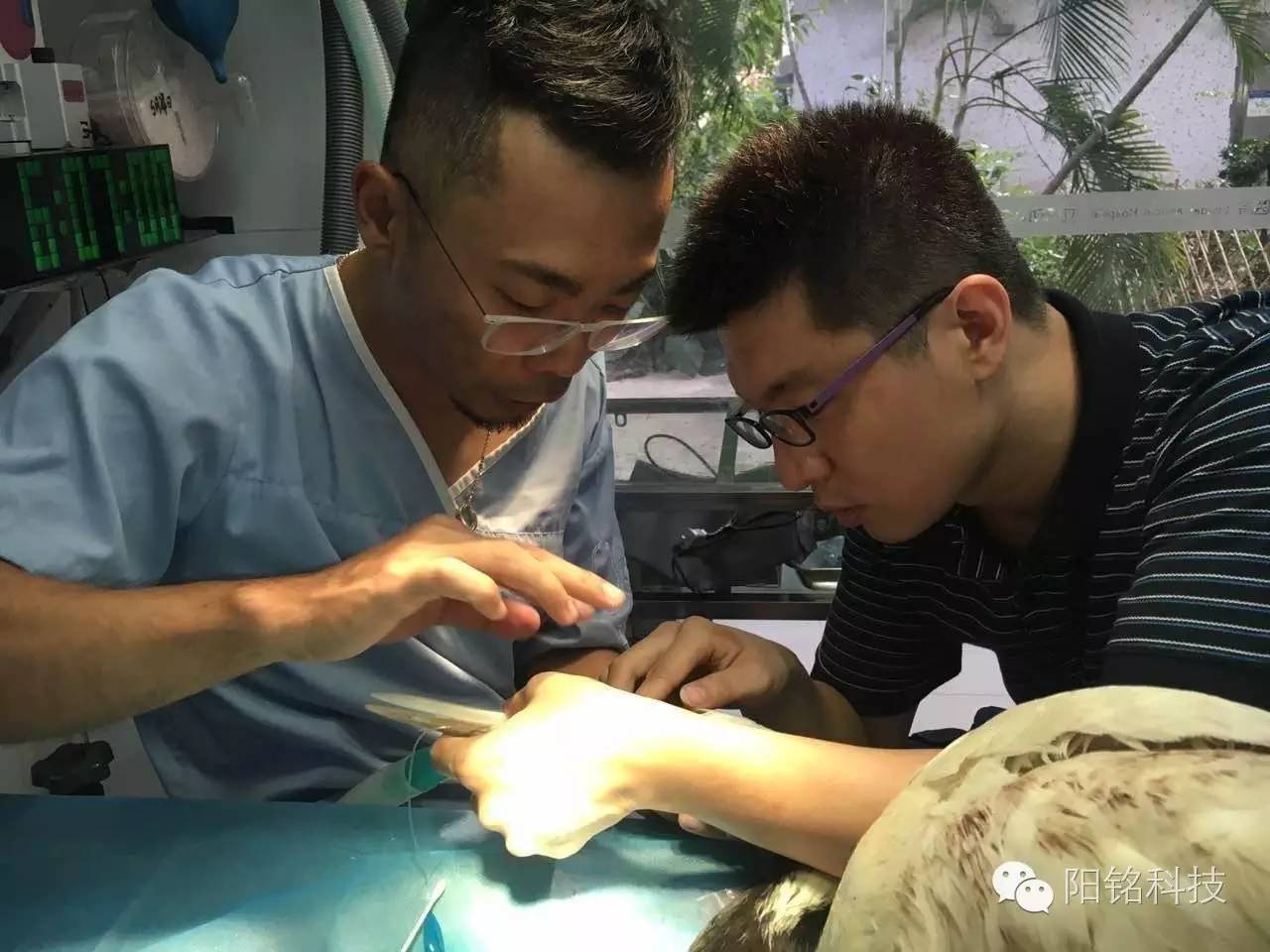 圖 9(動(dòng)物醫(yī)院的醫(yī)生們正在為“立立”進(jìn)行義喙安裝手術(shù))